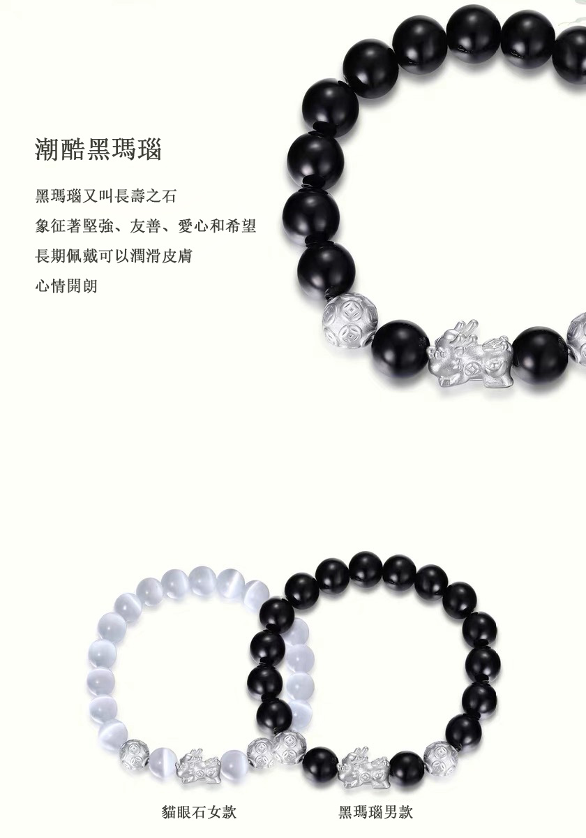 招財貔貅手串-黑曜石