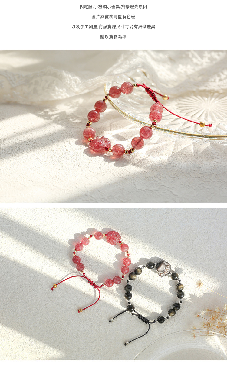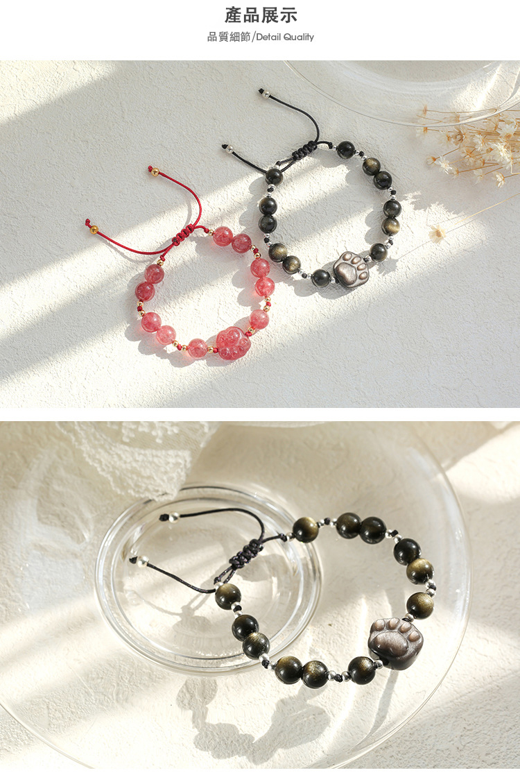 招財貓爪 · 開運水晶情侶手串 | 和諧和堅定內心